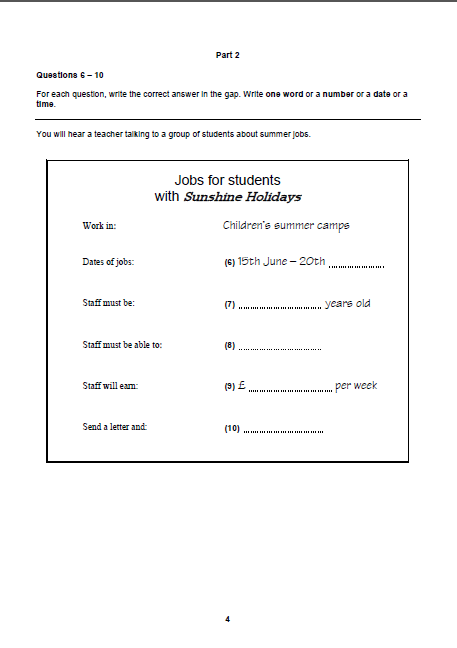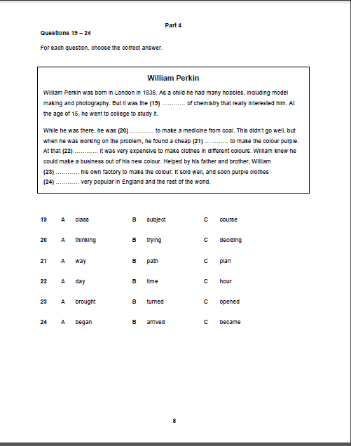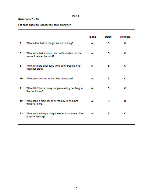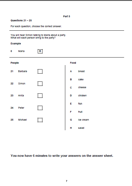 - Nói (8-10 phút, chiếm 25% tổng điểm): Các thí sinh cần phải chứng minh khả năng giao tiếp bằng tiếng Anh của mình bằng cách đặt và trả lời các câu hỏi đơn giản. Thí sinh sẽ tham gia thi nói với 1 thí sinh khác hoặc theo nhóm 3 thí sinh.