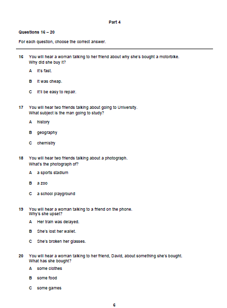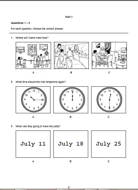 - Nghe (30 phút, chiếm 25% tổng điểm): Bài thi Nghe đánh giá khả năng nghe những thông tin như thông báo những tài liệu nói khi được nói ở tốc độ khá chậm.