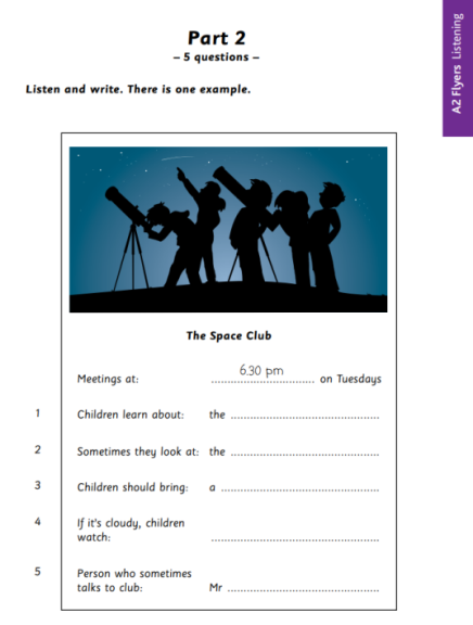 Cambridge Flyers hay A2 Flyers là bài thi thứ ba trong hệ thống các bài thi Cambridge YLE đánh giá năng lực tiếng Anh trẻ em. Bài thi yêu cầu mỗi thí sinh trải qua 70’ để hoàn thành 3 phần thi: