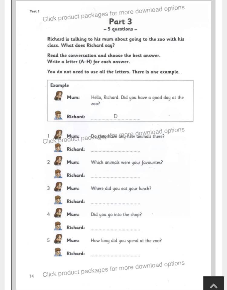 Phần 2: Chọn đúng các phần còn thiếu của một đoạn hội thoại.
